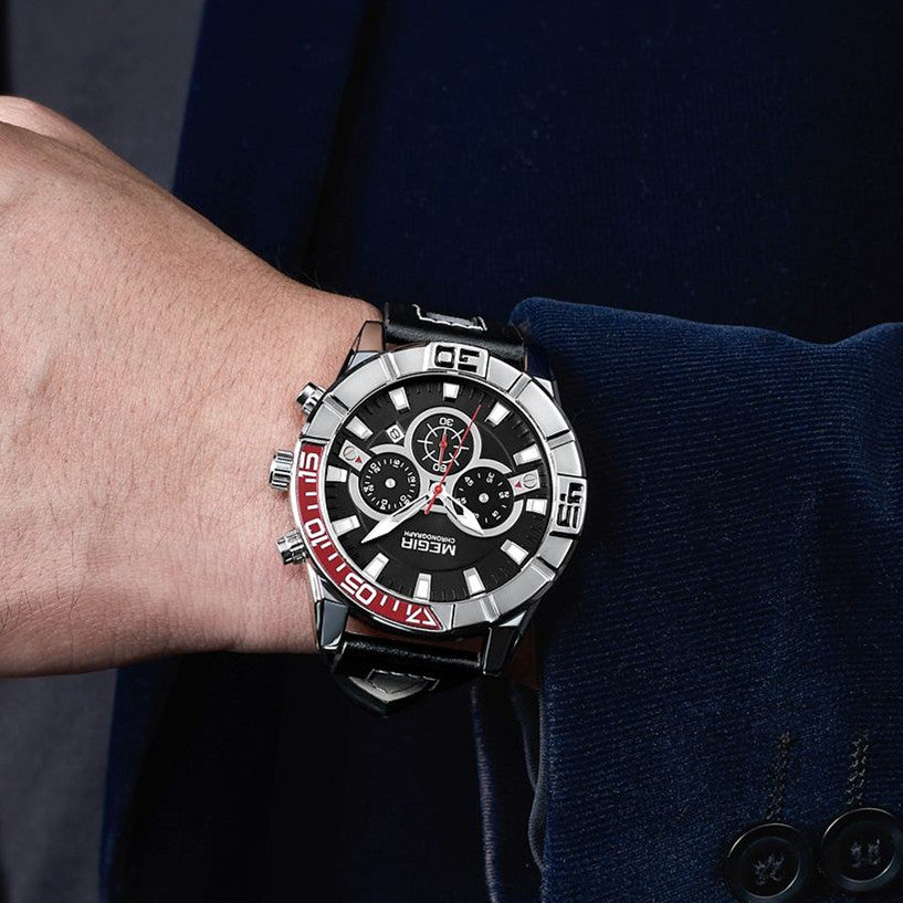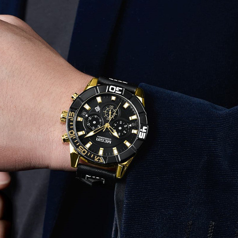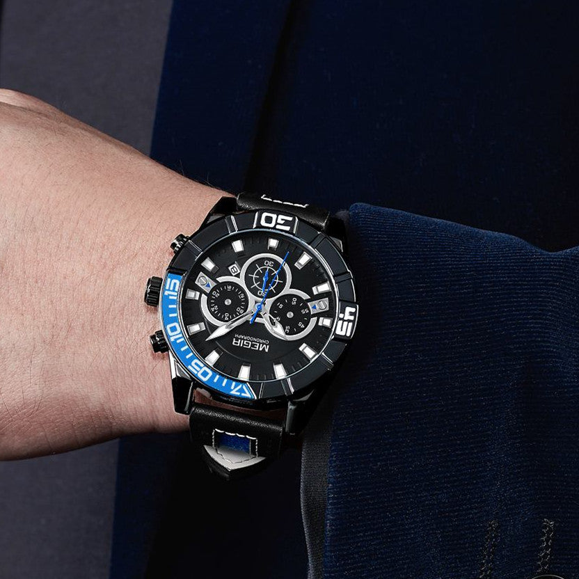 MEGIR Watches for Mens Top Brand Luxury Military Sports Watches Chronograph Leather Waterproof Date Quartz Wristwatch Man Clock