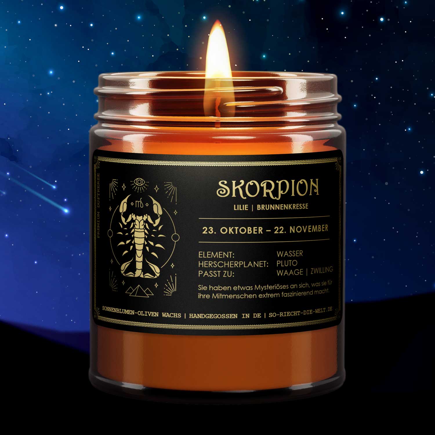 Skorpion Sternzeichen Kerze - Lilie | Brunnenkresse